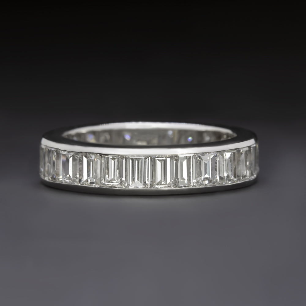 4ct VINTAGE F-G VVS2-VS1 DIAMOND ETERNITY RING PLATINUM WEDDING BAND BAGUETTE